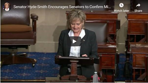 Sen. Cindy Hyde-Smith spoke on the floor of the Senate Tuesday urging a positive vote by her colleagues.