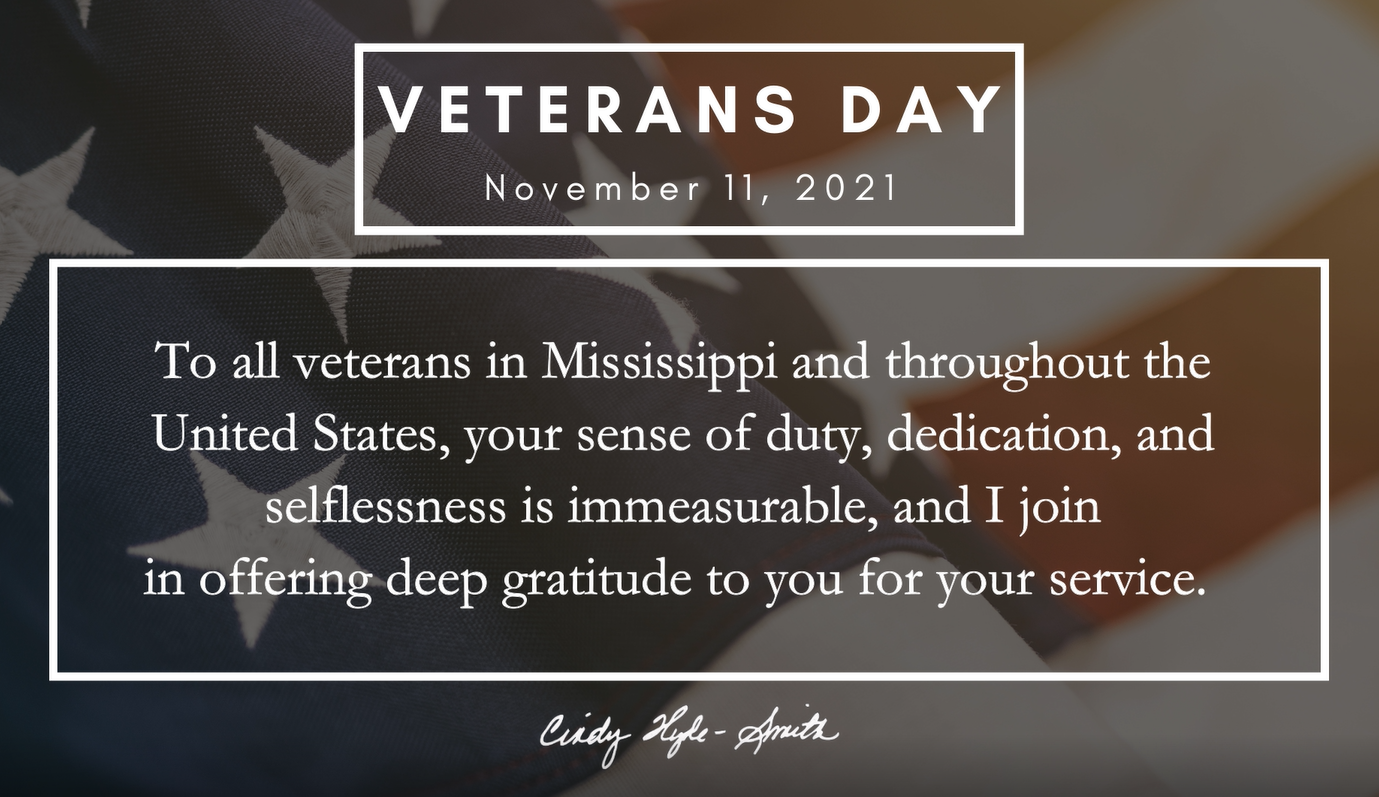 “To all veterans in Mississippi and throughout the United States, your sense of duty, dedication, and selflessness is immeasurable, and I join in offering deep gratitude to you for your service,” Hyde-Smith said.  “Do not hesitate to let me know if I can be of assistance to any of you.”