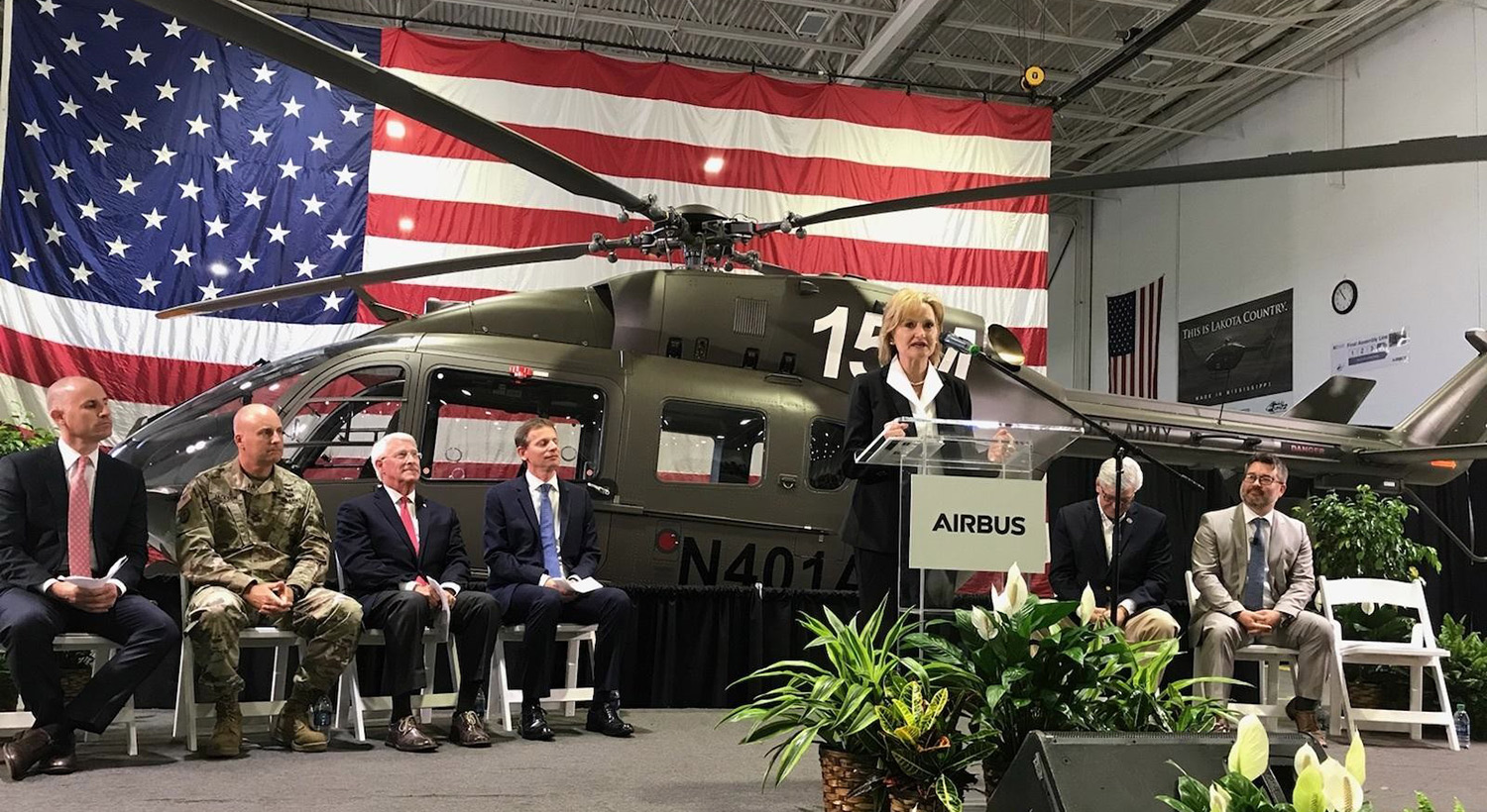 Senator Hyde-Smith addresses the crowd at the Airbus manufacturing plant in Columbus. (May 4, 2018) Category At Work Senator Tours Previous Next