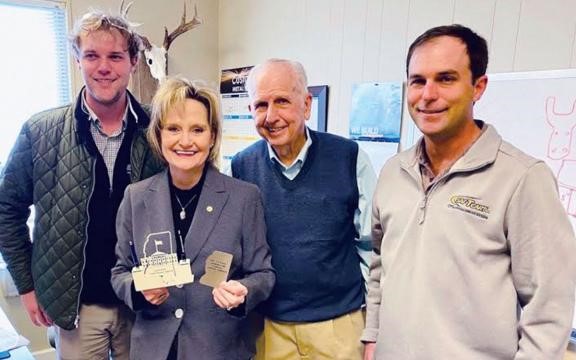 Senator Cindy Hyde-Smith also toured SafTCartduring last week’s visit to Clarksdale. She is shown with SafTCart executives Reid Walker, Jimmy Walker and Andy Parks.