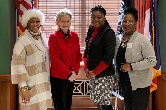 Senator Hyde-Smith visits with DeSoto County Head Start representatives Eloise McClinton, Angela Mayfield, and Lillie Smith. (Jan. 30, 2019)