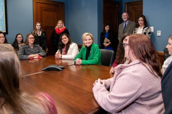 Senator Hyde-Smith meets with Sacred Heart Catholic School students, who were visiting the nation's capital from Hattiesburg. The group was taking part in the Close Up Foundation High School Program. (Feb. 13, 2019)