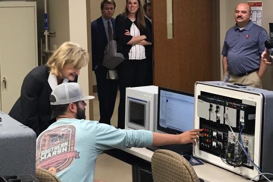 Senator Hyde-Smith visits with an Itawamba Community College student during the debut of “Get on the Grid, Mississippi’s Virtual Guidance Counselor." (Oct. 29, 2018)