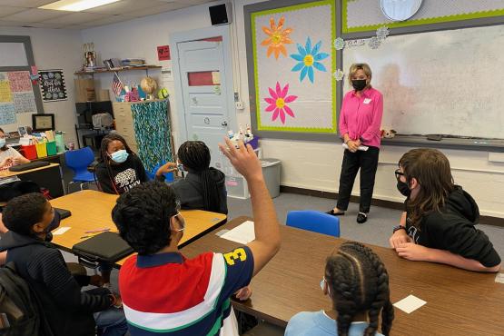 Senator Hyde-Smith discusses the federal government and jobs with eighth-grade students at Rod Paige Middle School in Monticello. (Oct. 14, 2021)