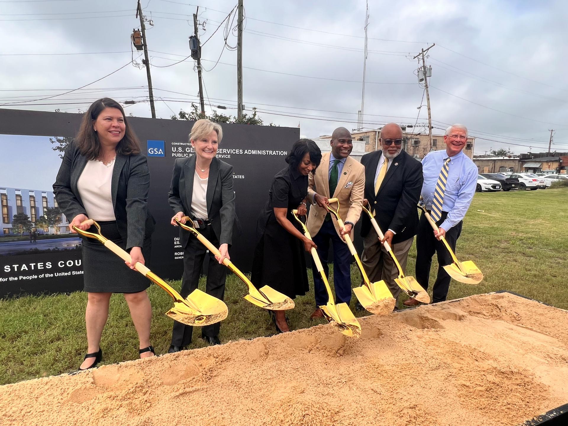 Senators Hyde-Smith and Roger Wicker, Representative Bennie Thompson, and other officials break ground for a new federal courthouse in Greenville. (Aug. 26, 2022) Category Senator Visits Previous