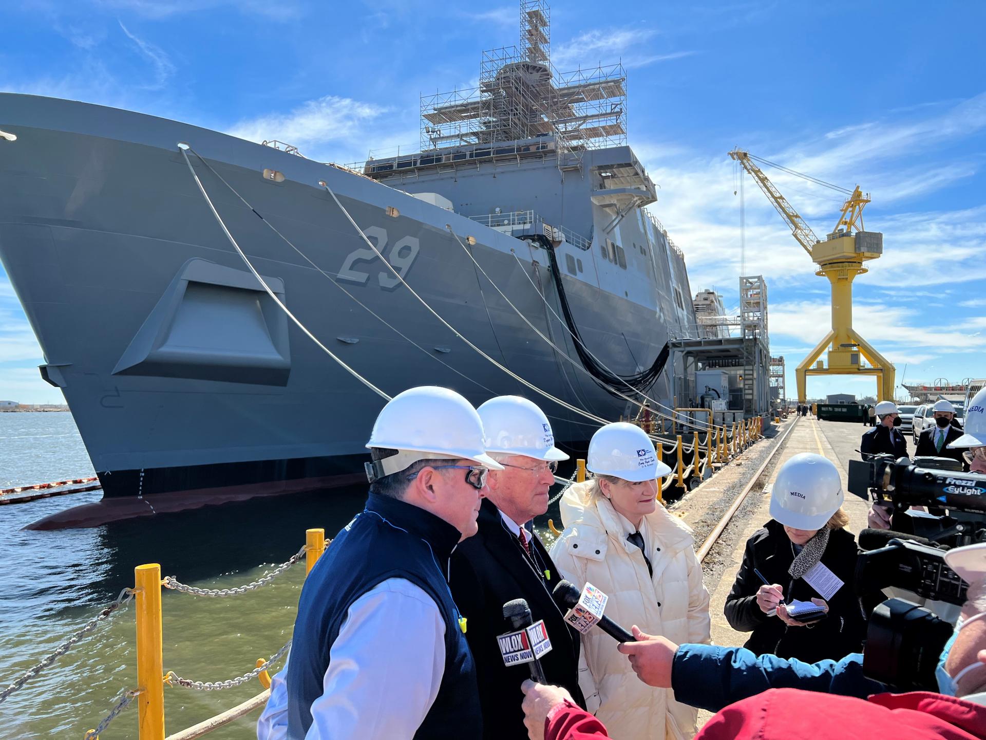 Senators Hyde-Smith and Roger Wicker, and Representative Steven Palazzo meet the news media following briefings and a tour of the Huntington Ingalls Shipyard in Pascagoula. (Jan. 26, 2022) Category Senator Tours Previous Next