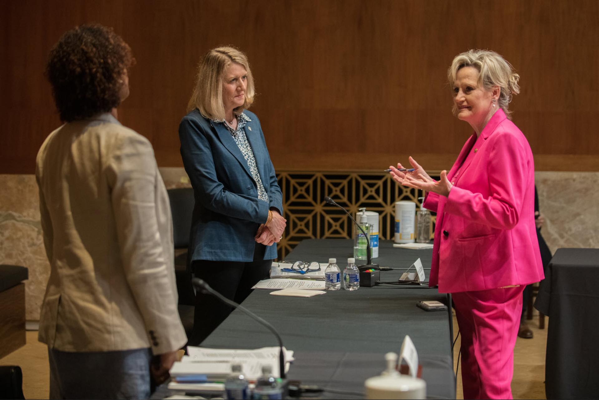 Senator Hyde-Smith greets U.S. Forest Service Chief Vicki Christiansen prior to an Interior Appropriations Subcommittee hearing on the agency’s FY2022 budget. (May 26, 2021) Category At Work Previous Next